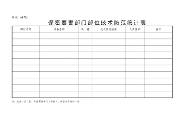 A0722 保密要害部门、部位技术防范统计表.doc