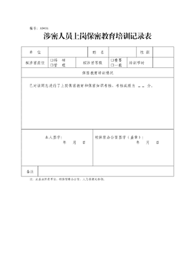 A0406涉密人员上岗保密教育培训记录表.docx