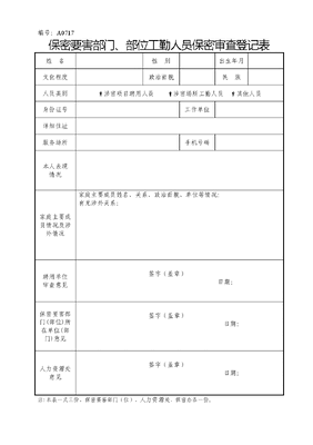 A0717 保密要害部门、部位工勤人员保密审查登记表.doc