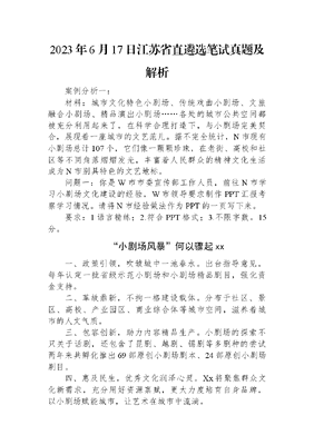 2023年6月17日江苏省直遴选笔试真题及解析.docx