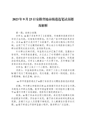 2023年9月23日安徽省地市级遴选笔试真题及解析.docx