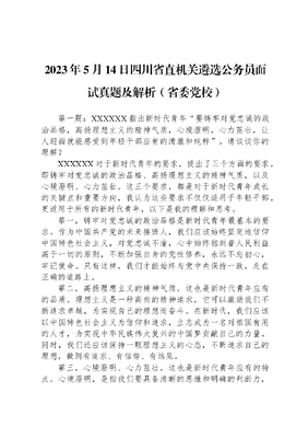 2023年5月14日四川省直机关遴选公务员面试真题及解析(省委党校).docx