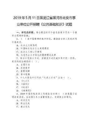 2019年5月11日黑龙江省黑河市北安市事业单位公开招聘《公共基础知识》试题.docx