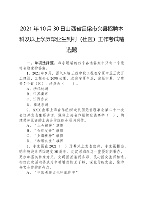 2021年10月30日山西省吕梁市兴县招聘本科及以上学历毕业生到村(社区)工作考试精选题.docx