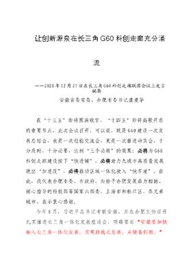 安徽省委常委、合肥市委书记虞爱华在长三角G60科创走廊联席会议上发言摘要.doc