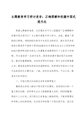主题教育学习研讨发言:正确理解和把握中国式现代化.docx