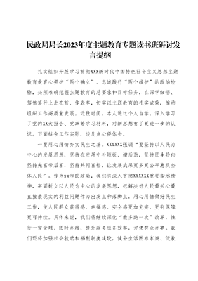 民政局局长2023年度主题教育专题读书班研讨发言提纲.docx