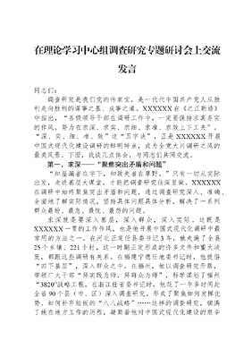 在理论学习中心组调查研究专题研讨会上交流发言.docx