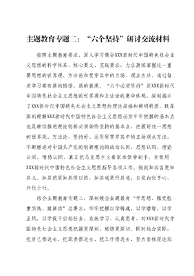 主题教育专题二:“六个坚持”研讨交流材料.docx