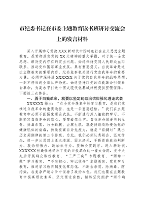 市纪委书记在市委主题教育读书班研讨交流会上的发言材料.docx
