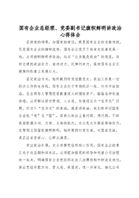 国有企业总经理、党委副书记旗帜鲜明讲政治心得体会.docx