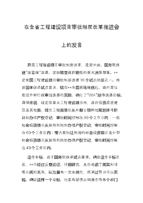 在全省工程建设项目审批制度改革推进会上的发言.docx