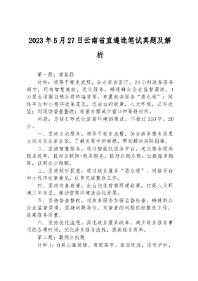 2023年5月27日云南省直遴选笔试真题及解析.docx
