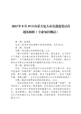 2023年8月19日内蒙古包头市直遴选笔试真题及解析(专业知识测试).docx