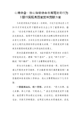 心得体会:初心如磐 使命在肩 笃定前行 为X银行实现高质量发展贡献力量.docx