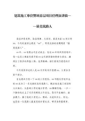 建筑施工单位赞颂基层项目经理演讲稿——最美筑路人.docx