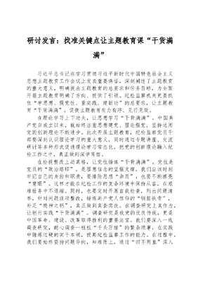 研讨发言:找准关键点+让主题教育课“干货满满”.docx