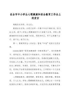 在全市中小学生心理健康和安全教育工作会上的发言.docx