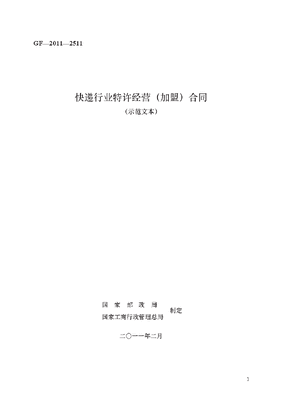 快递行业特许经营(加盟)合同 GF—2011—2511.docx