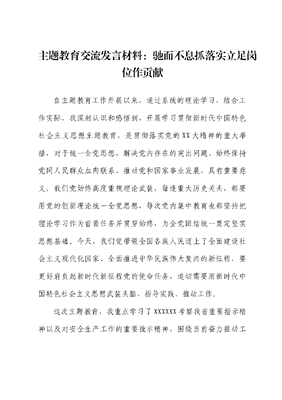 主题教育交流发言材料:驰而不息抓落实 立足岗位作贡献.docx