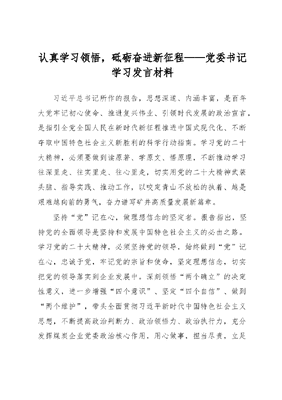 认真学习领悟,砥砺奋进新征程——党委书记学习发言材料.docx