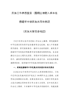 民族工作表态发言:围绕立德树人根本任务 铸牢中华民族共同体意识(民族大学党委书记).docx