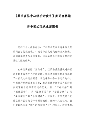 【共同富裕中心组研讨发言】共同富裕铺展中国式现代化新图景.docx