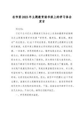 在市委2023年主题教育读书班上的学习体会发言.docx