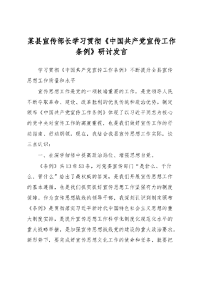 某县宣传部长学习贯彻《中国共产党宣传工作条例》研讨发言.docx