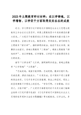 2023年主题教育研讨材料:在以学铸魂、以学增智、以学促干方面取得实实在在的成效.docx