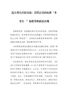 选人用人经验交流:设置正反向标准“多考合一”精准掌握政治表现.docx
