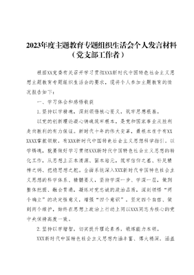 2023年度主题教育专题组织生活会个人发言材料(党支部工作者).docx