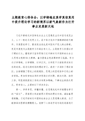 主题教育心得体会:以学铸魂在真学真信真用中提升理论学习的新境界以新气象新作为打开事业发展新天地.docx