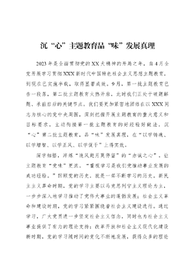 第二批主题教育学习心得:沉“心”主题教育 品“味”发展真理.docx