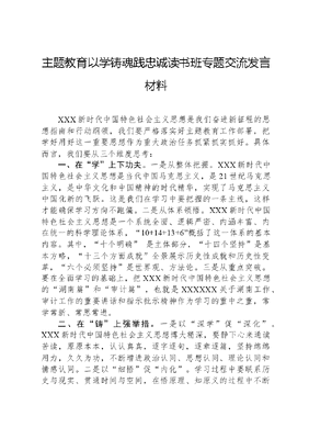 主题教育以学铸魂践忠诚读书班专题交流发言材料.docx