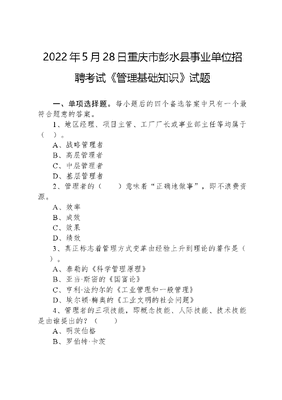 2022年5月28日重庆市彭水县事业单位招聘考试《管理基础知识》试题.docx