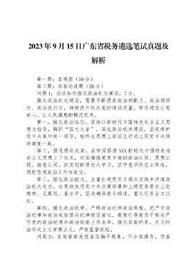 2023年9月15日广东省税务遴选笔试真题及解析.docx