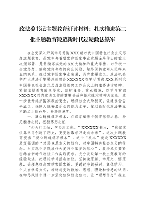 政法委书记主题教育研讨材料:扎实推进第二批主题教育+锻造新时代过硬政法铁军.docx