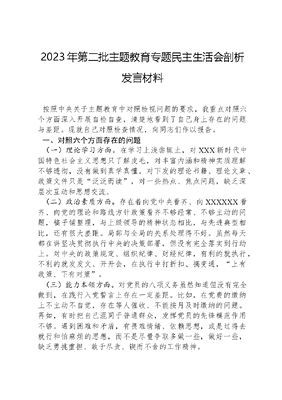 2023年第二批主题教育专题民主生活会剖析发言材料.docx