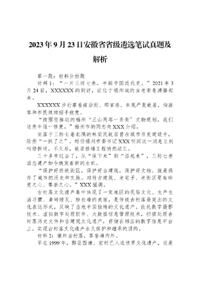 2023年9月23日安徽省省级遴选笔试真题及解析.docx