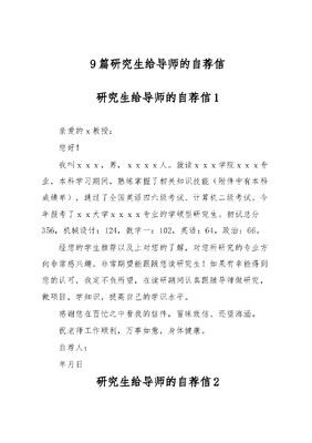 (9篇)研究生给导师的自荐信.docx
