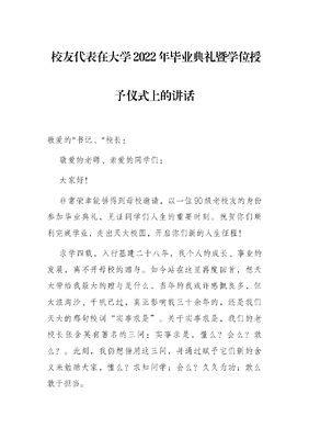 校友代表在大学2022年毕业典礼暨学位授予仪式上的讲话.docx