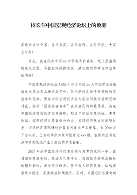 校长在中国宏观经济论坛上的致辞.docx