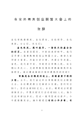 在常熟精英创业联盟大会上的致辞.doc