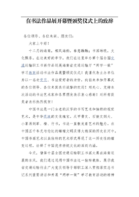 在书法作品展开幕暨颁奖仪式上的致辞.docx
