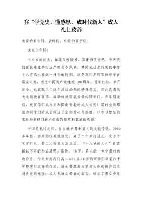 在“学党史、懂感恩、成时代新人”成人礼上致辞.docx