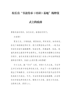 校长在“书法传承(培训)基地”揭牌仪式上的致辞.docx