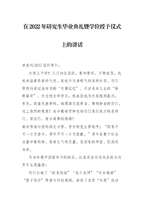 在2022年研究生毕业典礼暨学位授予仪式上的讲话.docx