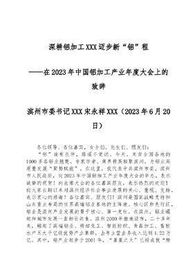 深耕铝加工 迈步新“铝”程——在2023年中国铝加工产业年度大会上的致辞.docx