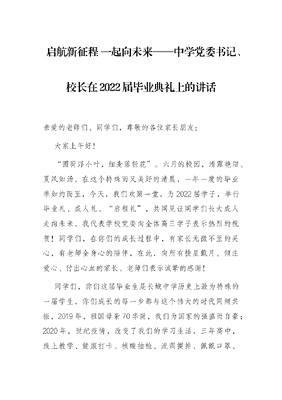 启航新征程 一起向未来——中学党委书记、校长在2022届毕业典礼上的讲话.docx